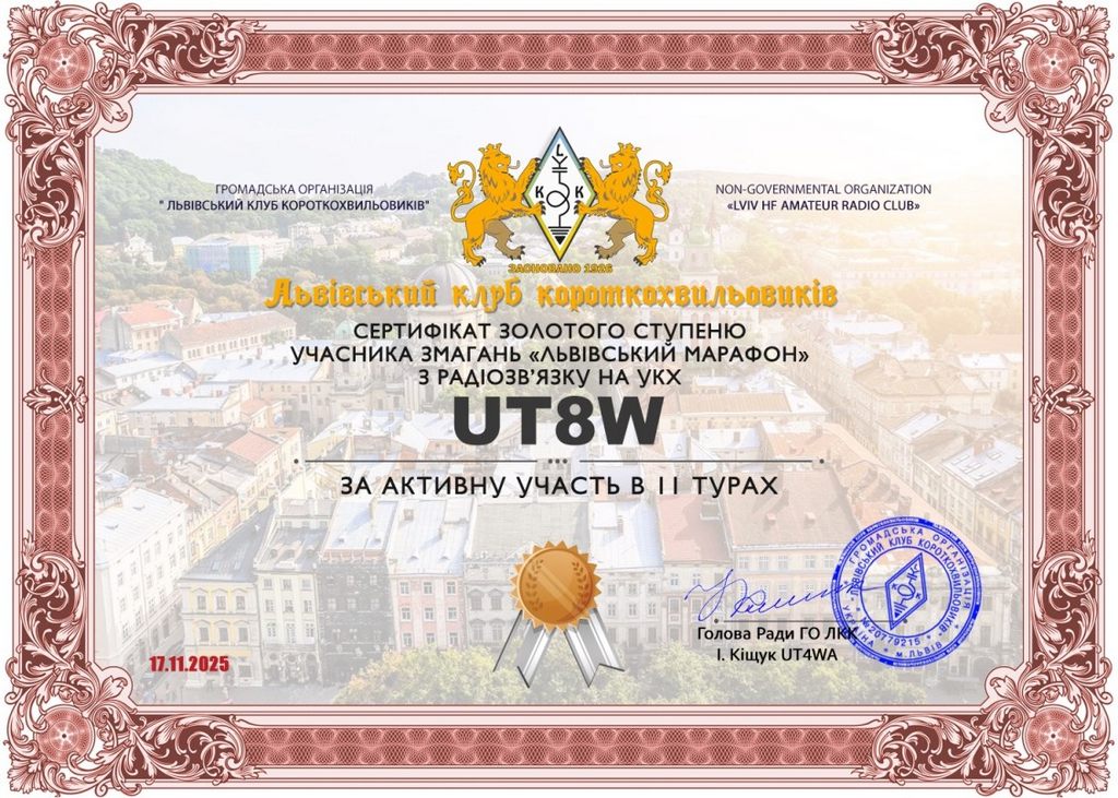 Дякую всім небайдужим, хто допоміг своєю участю у змаганнях довести, що такий марафон не тільки можливий, а й необхідний для радіоаматорів Львівщини і не тільки Львівщини. Марафон відбувся і марафн довів свою значимість особливо для молоді і тих, хто тільки розпочинає свій шлях по чудових хвилях УКХ/КХ.